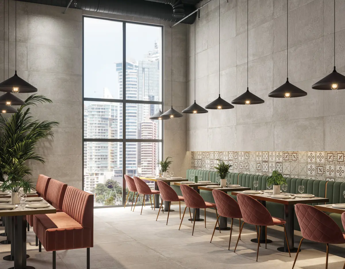 Su propuesta gráfica nos desvela la esencia del cemento natural con las imperfecciones propias del trabajo manual.